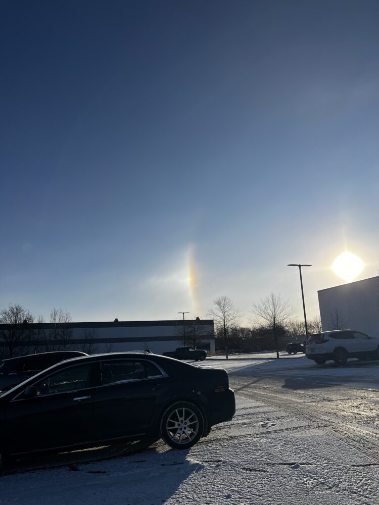 A portion of a 22-degree halo and a sun dog spotted over Wauconda, Illinois, US