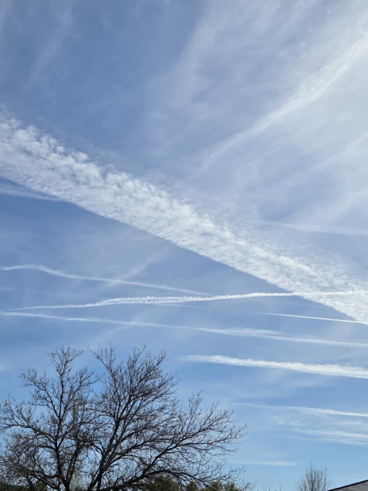A plethora of contrails over St. Johnsbury, Vermont, US