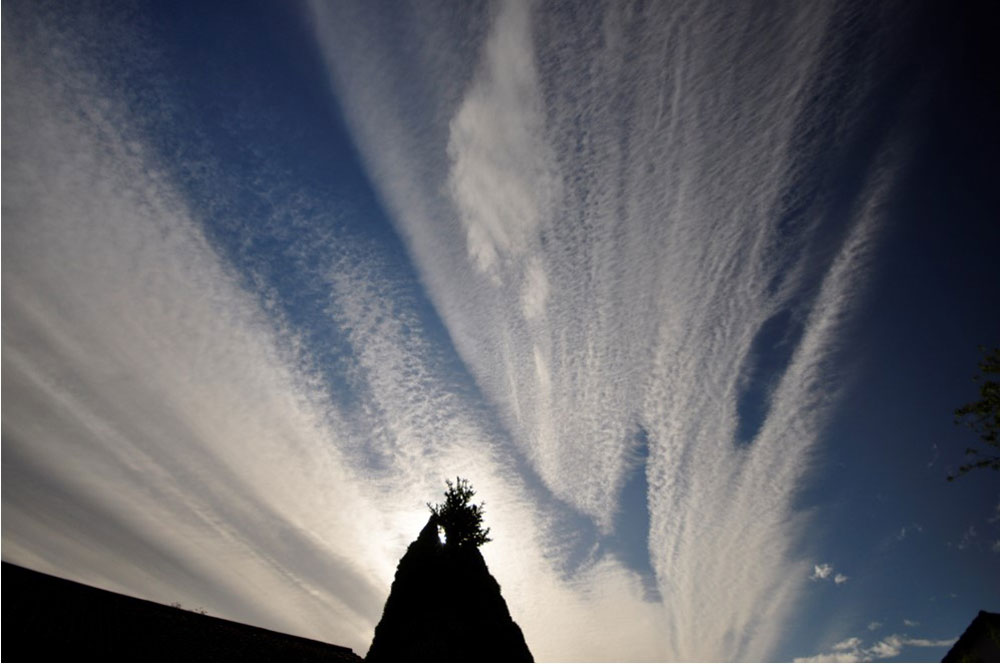 High speed clouds radiate towards the horizon over Blairgowrie ,Perthshire, Scotland.