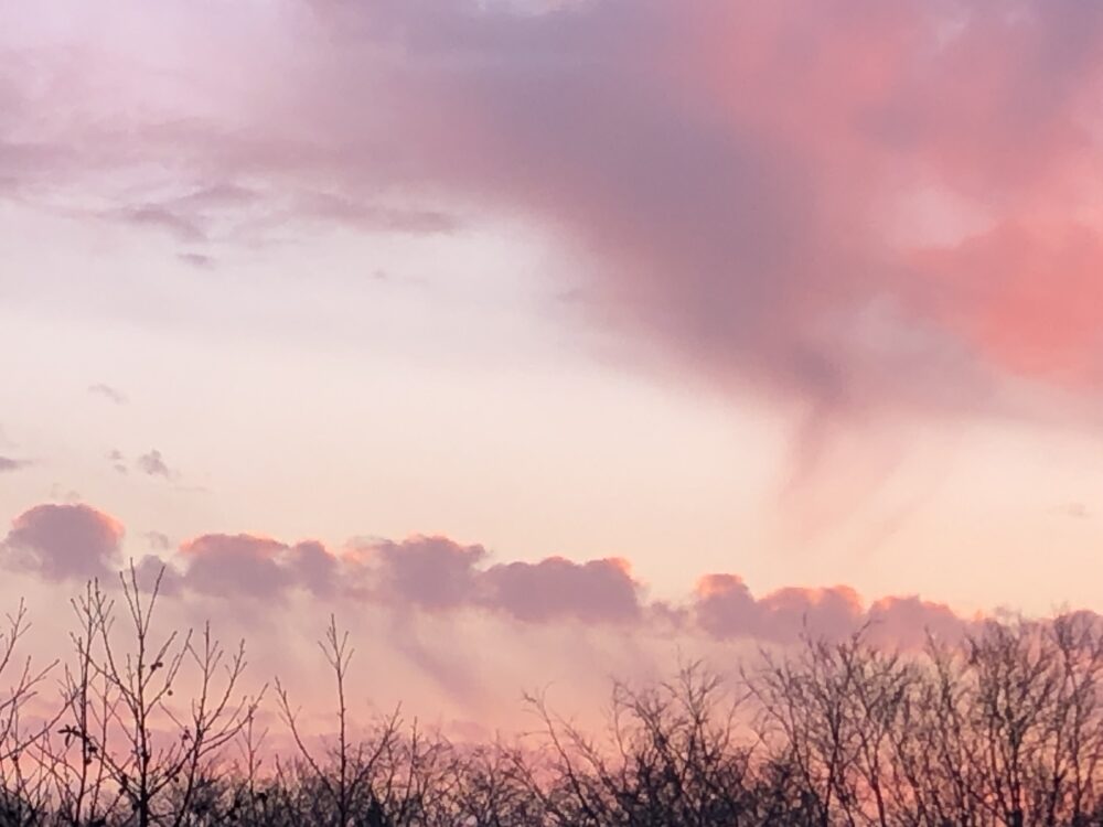 Following some light snow, a patch of blue appeared in the sky at sunset, near Falls Church, Virginia, US