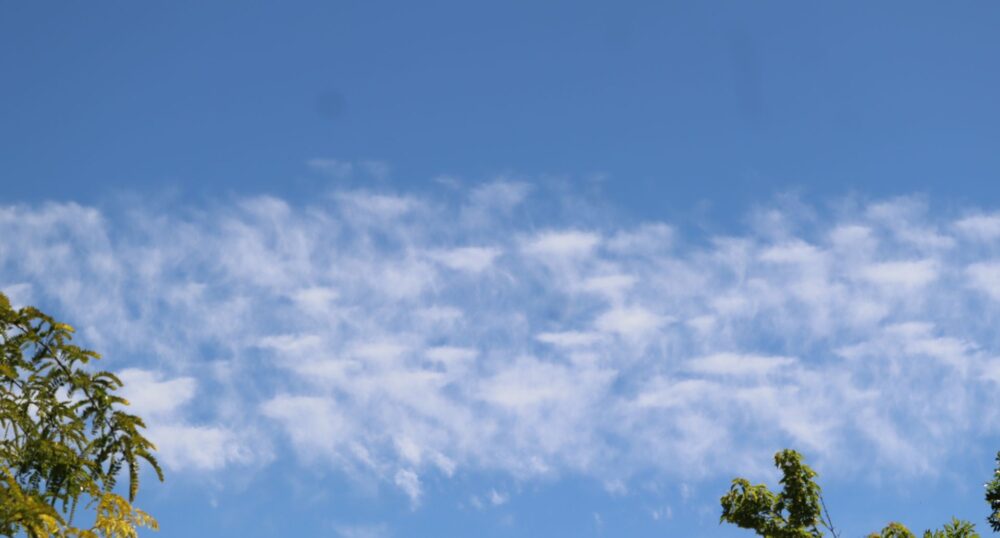 A set of trees reaching upwards towards the sky, with cirrocumulus undulates spotted over Somerset, England