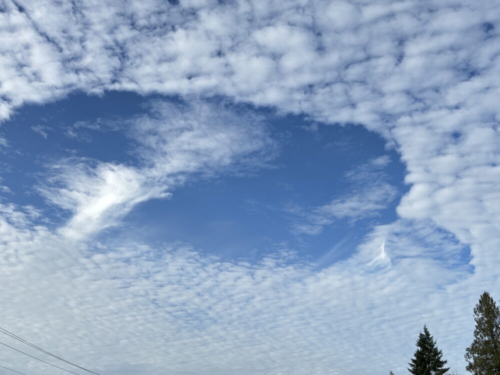 A larger fallstreak hole (cavum) accompanied by a smaller one, spotted over Arlington, Washington, US