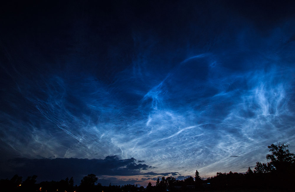 A display of noctilucent clouds over Schleiz, Thuringia, Germany.