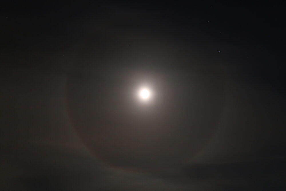 A lunar 22-degree halo spotted over Westbury sub Mendip, near Wells, Somerset, England