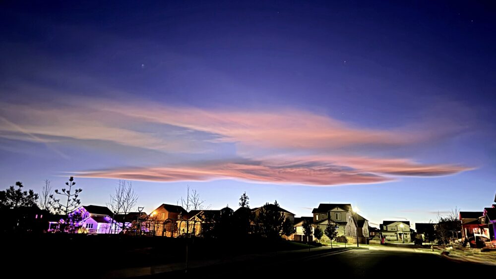 Altocumulus lenticularis spotted during the 'blue hour', a period of twilight that happens just after sunset and just before sunrise, when the sun is a few degrees below the horizon, as seen here over Brighton, Colorado, US