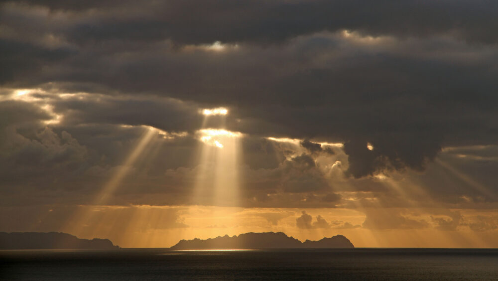 Crepuscular rays spotted over Funchal, Madeira, Portugal