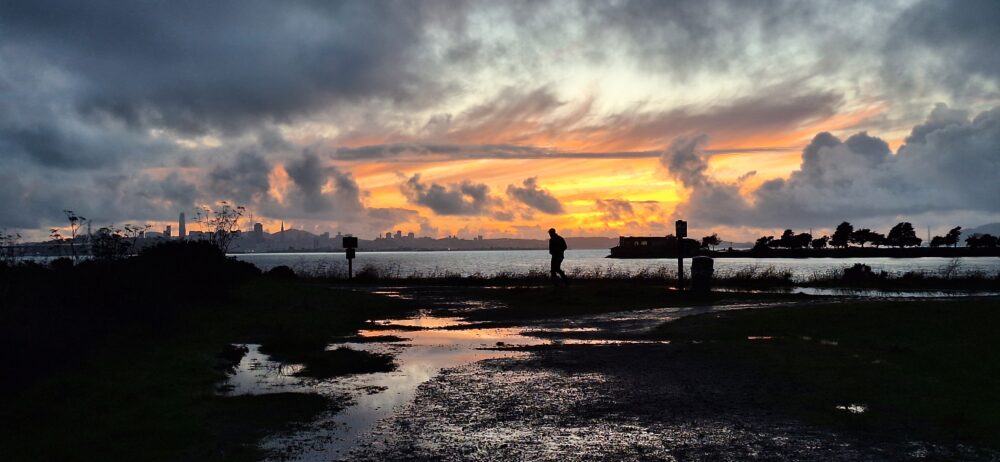 Following the passage of a storm, Monica had this view of a mixed sky during an evening walk, looking across the bay towards San Francisco, from Berkeley, California, US