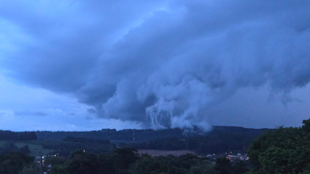 Cumulonimbus with an arcus outlining the leading edge of the storm, accompanied by pannus, spotted by John's friend, Will Werner, in Brazil