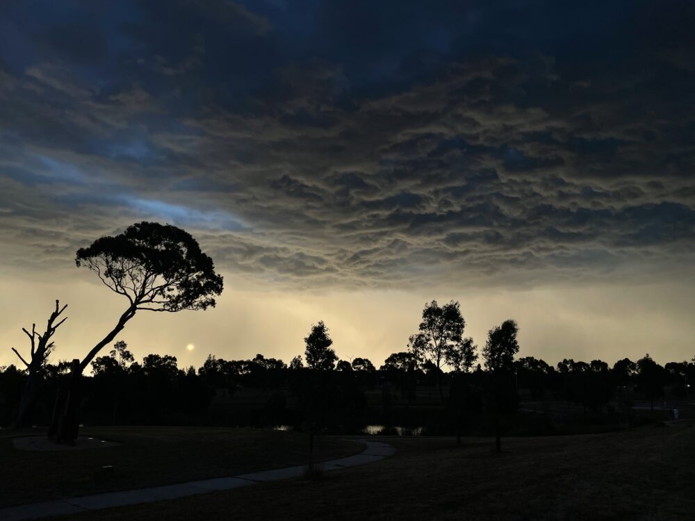 The setting sun illuminating a storm overhead, spotted near Throsby, Canberra, Australia