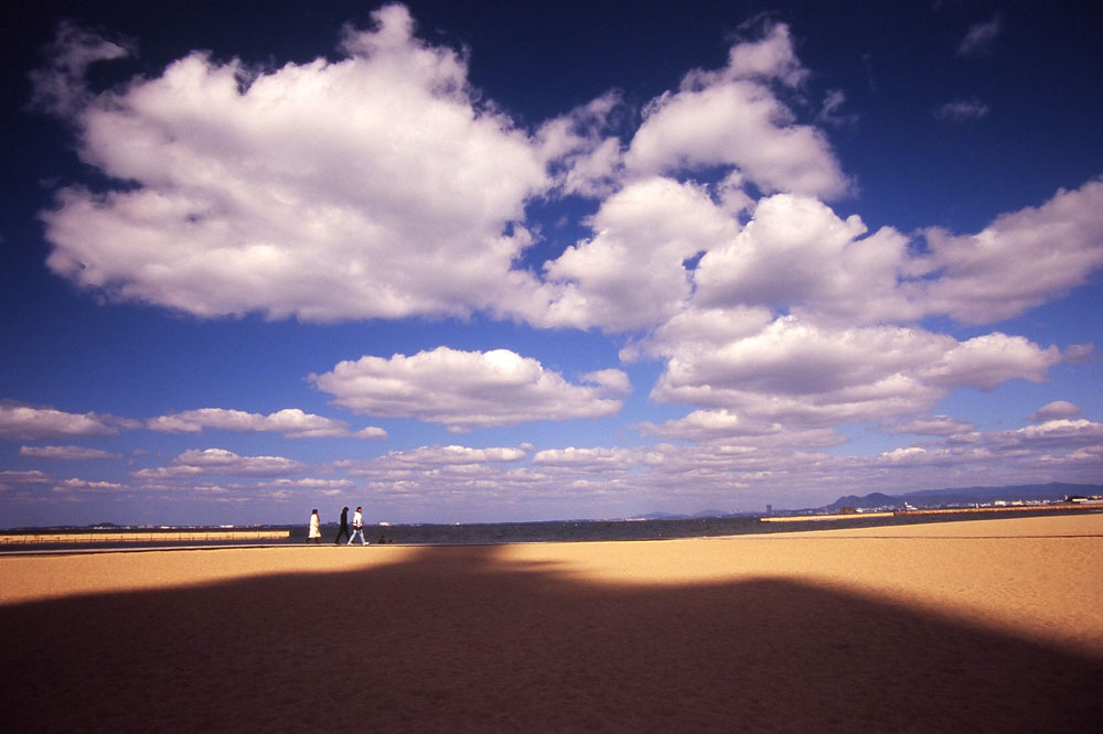 A fair weather cloud day over Momochi Seaside Park , Fukuoka City, Japan.