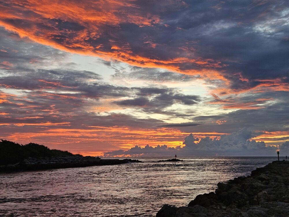 A mixed sky over the Atlantic Ocean, near Boca Raton, Florida, US