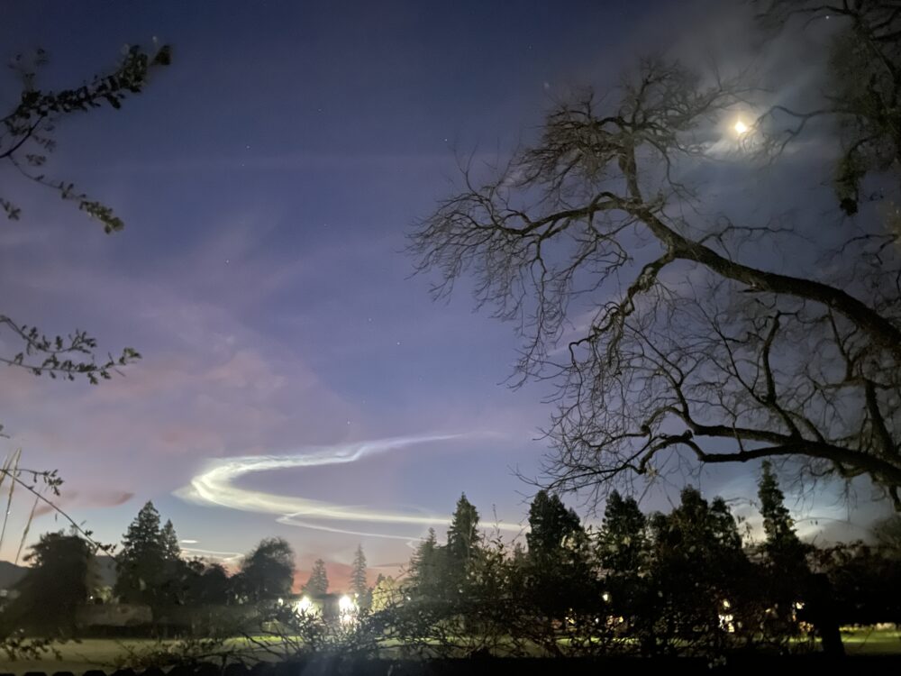 A wide range of contrails and dispersement as a result of varying atmospheric conditions, such as humidity, temperature, wind shear, and atmospheric and aircraft-induced turbulence. The clouds that are formed are done so via homogenitus and are dispersed wider in conditions of high humidity and high wind shear. This expansive display was captured by Ted Burrows over Lexington, Virginia, US.