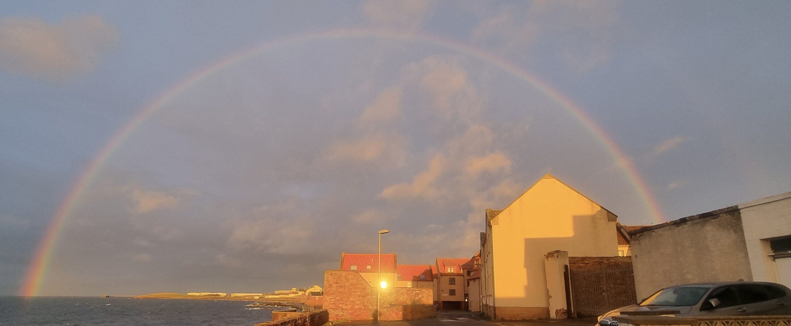 Sunset accompanied by a rainbow, spotted near Prestonpans, Scotland