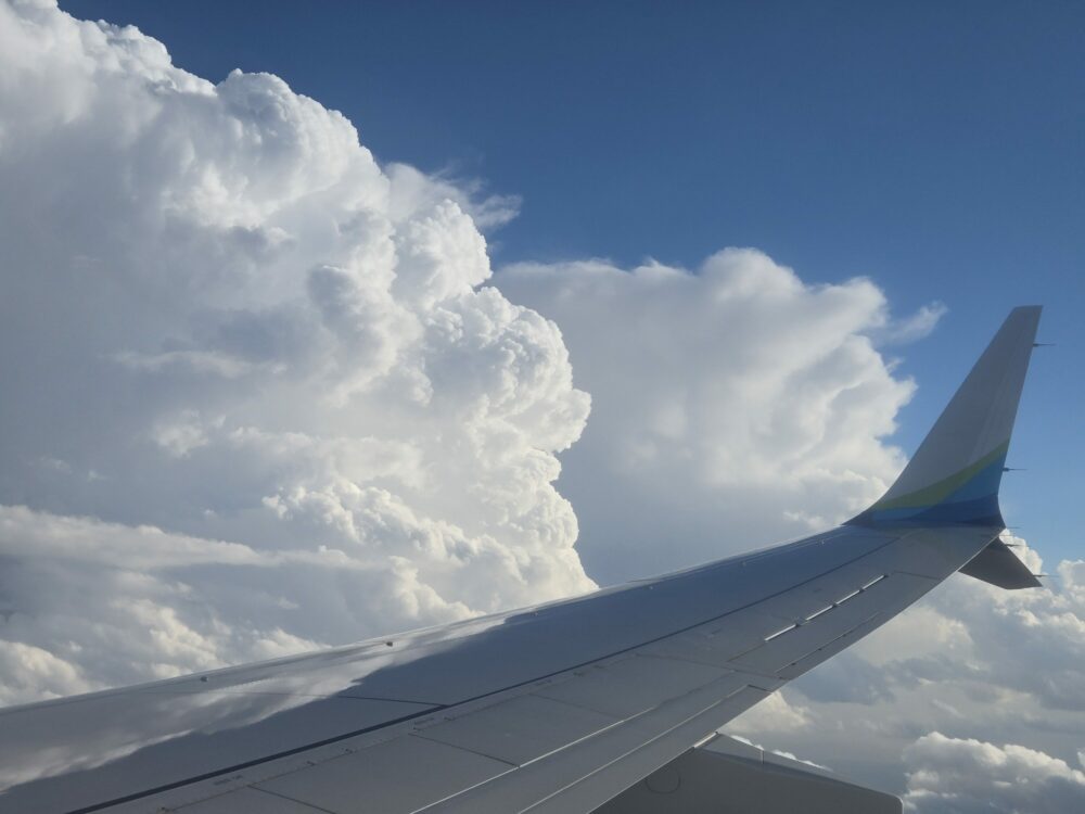 A unique vantage point of a developing storm system, spotted while flying over Albuquerque, New Mexico, US