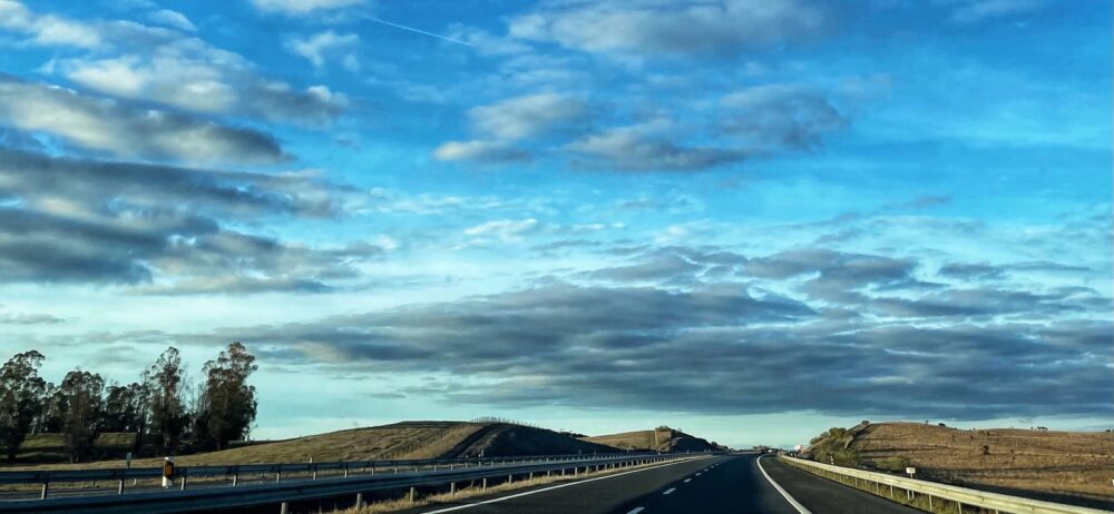 On the road towards stratocumulus clouds, spotted over Alentejo, Portugal