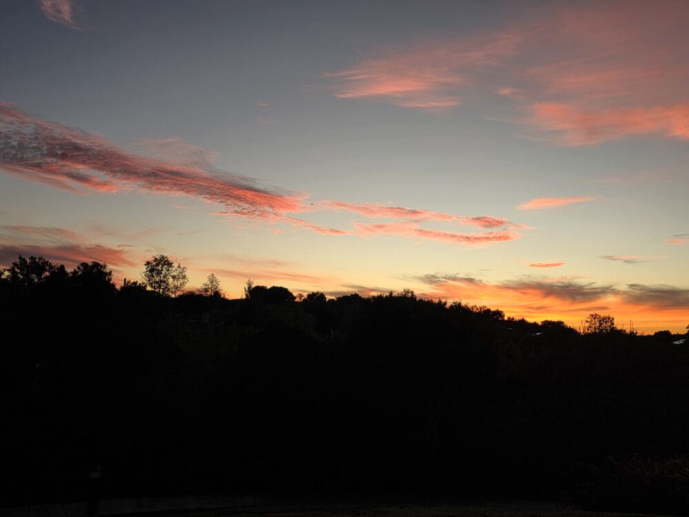 Sunset with altocumulus clouds, with the shape reminding Carolyn of pince-nez glasses that were very popular in the late 19th century and early 20th century, spotted over Irvine, California, US