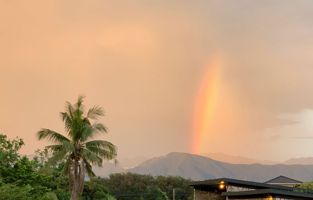 A red rainbow at sunset over Southern Taiwan.