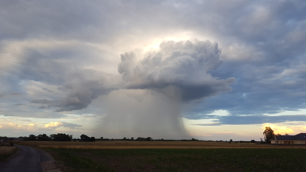 A microburst (cloud sneeze), over the planes of Greater Poland.