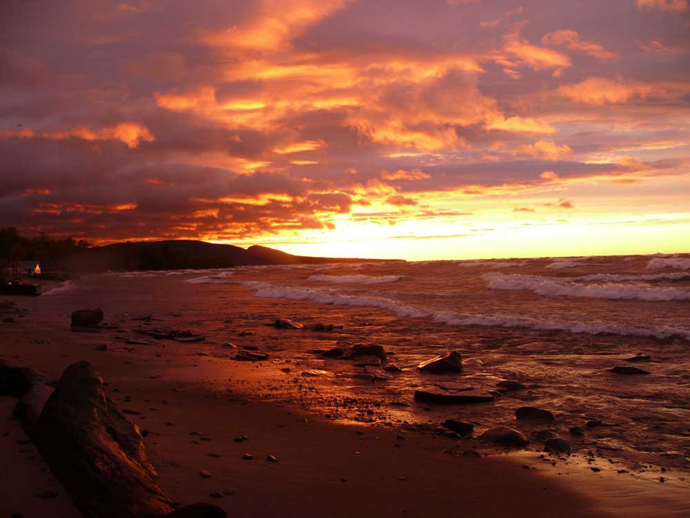 A sunset over Lake Superior, Michigan, US.