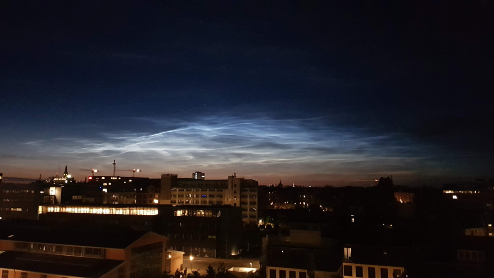 A display of noctilucent clouds over Copenhagen.