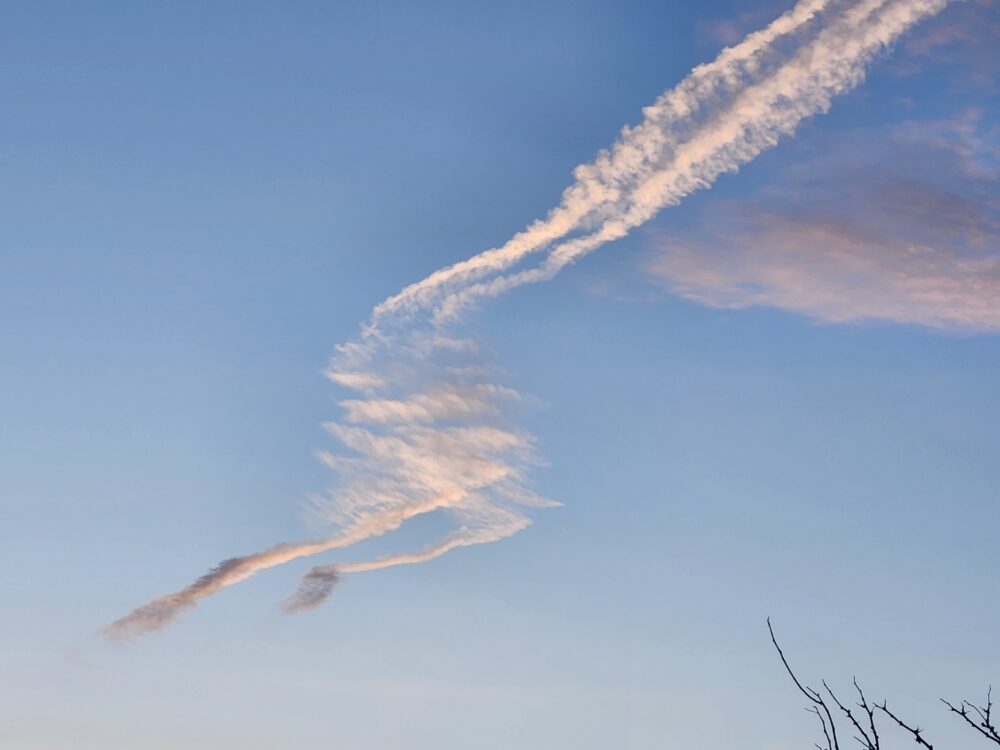 A contrail that Michael described as needing a bit of a jumping, leaping start, spotted shortly after sunrise over Madison, Wisconsin, US