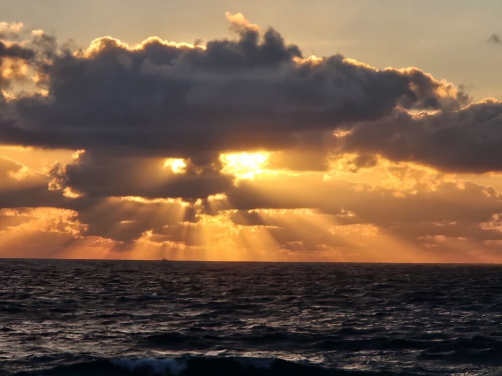Crepuscular rays during sunrise over the Atlantic Ocean, near Boca Raton, Florida, US