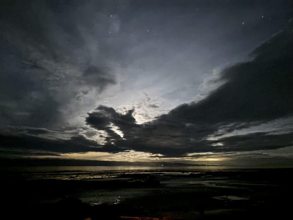 Stratocumulus visible at night with the moonlight, spotted near Neah Bay, Washington, US