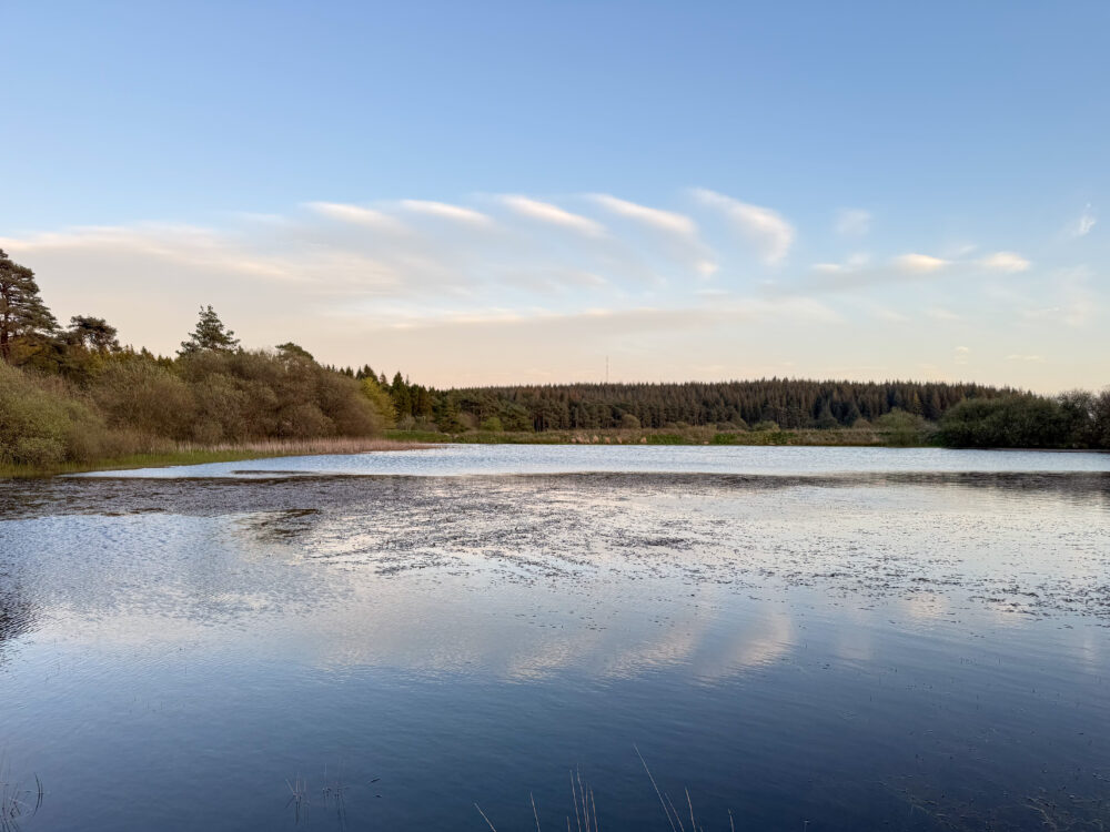 Altocumulus undulatus spotted in the sky and reflected in the water, near Somerset, England