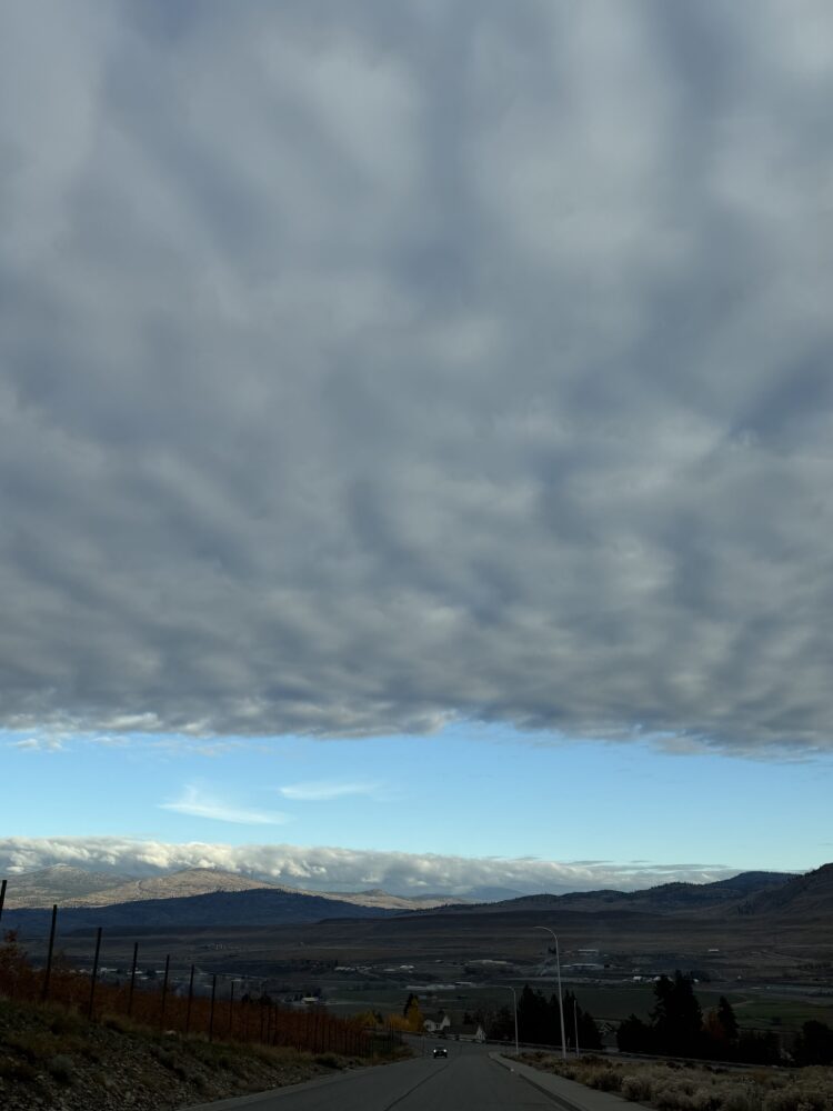 A layer of stratus over the hills in the distance, accompanied by a layer of stratocumulus in the foreground, spotted over Omak, Washington, US
