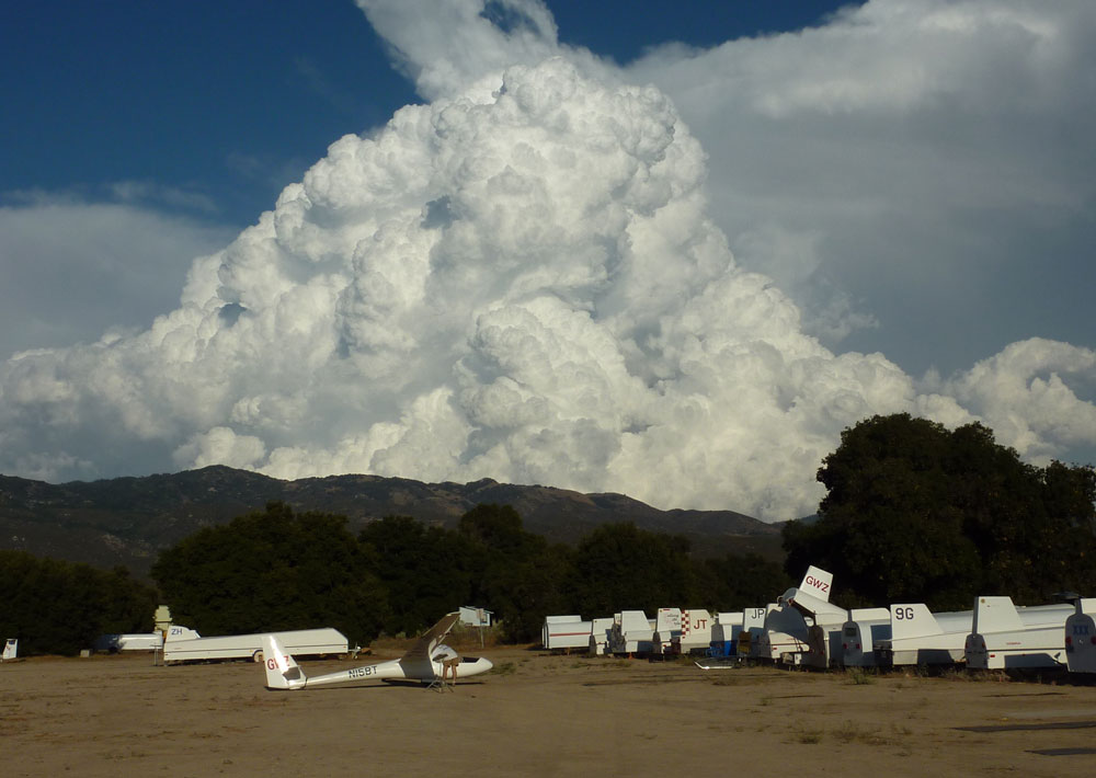 The Glider pilots are grounded as this system develops over the Anza Borrego Desert. Viewed from the Warner Springs Gliderport in San Diego County, California, US.