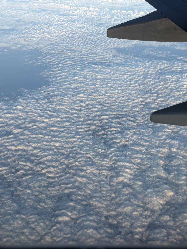 A view of Altocumulus stratiformis undulatus from above the clouds, off of the Atlantic Coast, near Daytona Beach, Florida, US