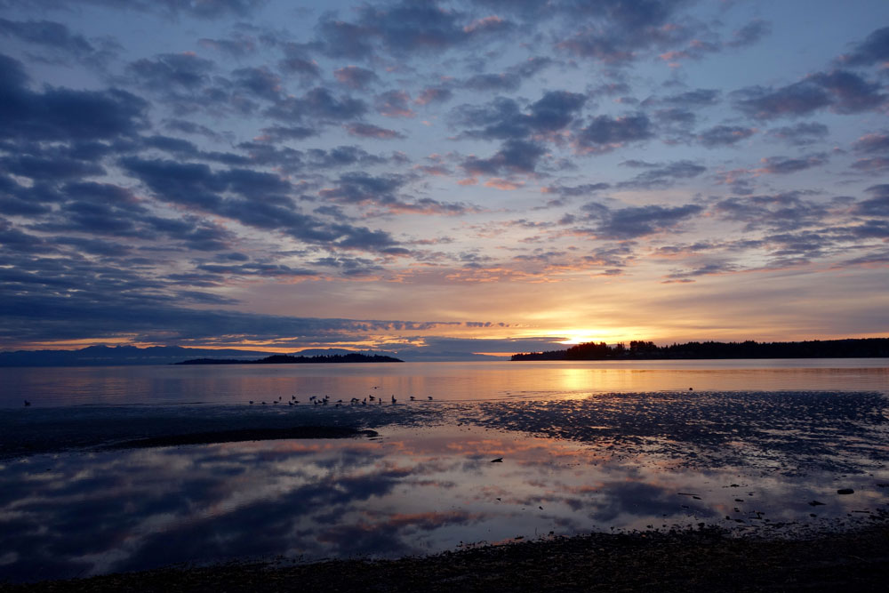 A sunrise over Rathtrevor Beach on Vancouver Island.