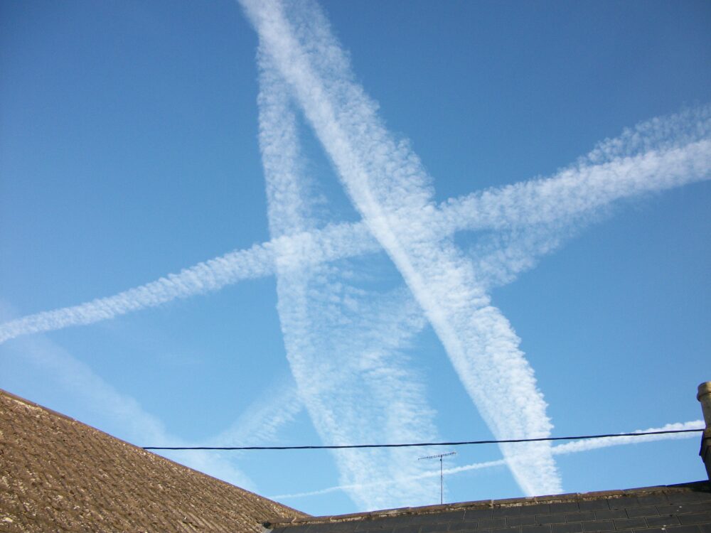 Contrails that morphed into a giant star over Lusk Village, County Dublin, Ireland