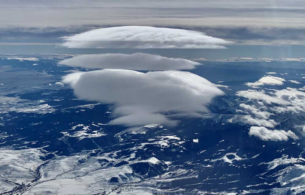 A rare juxtaposition of Fluctus (Kelvin-Helmholtz) with Altocumulus lenticularis duplicatus, spotted during a geomorphology-focused field trip, wherein Oscar was captivated by what was unfolding above on this windy day near Mt. Cook/Aoraki, Tasman Valley, New Zealand