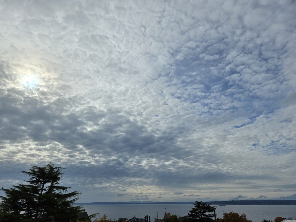 Altocumulus perlucidus spotted over Puget Sound, near Seattle, Washington, US