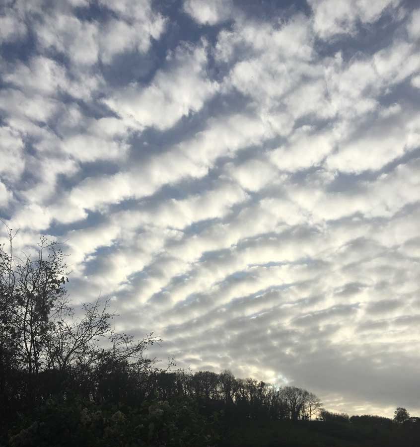 A Mackerel sky over Etsome Hill, Somerton, Somerset, UK.