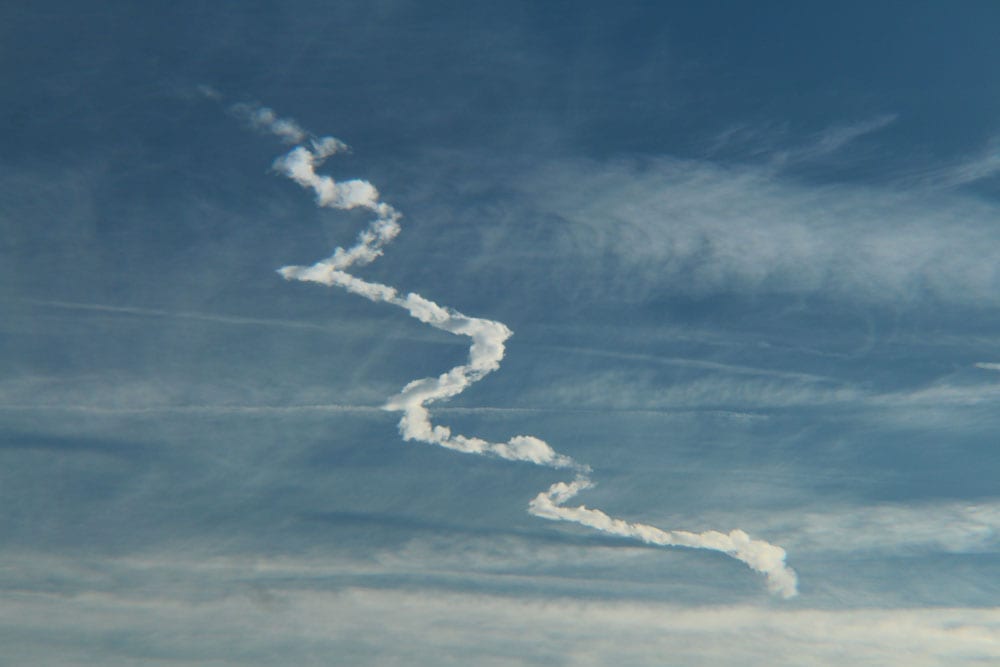 A contrail from a SpaceX Falcon 9 rocket snakes its way over Cape Canaveral, Florida, US.