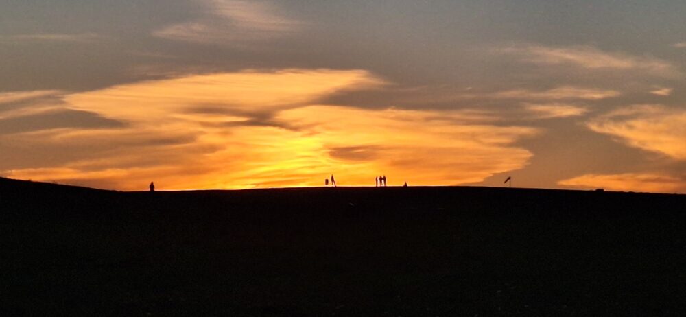 Sunset with altocumulus clouds, with the shape reminding Carolyn of pince-nez glasses that were very popular in the late 19th century and early 20th century, spotted over Irvine, California, US