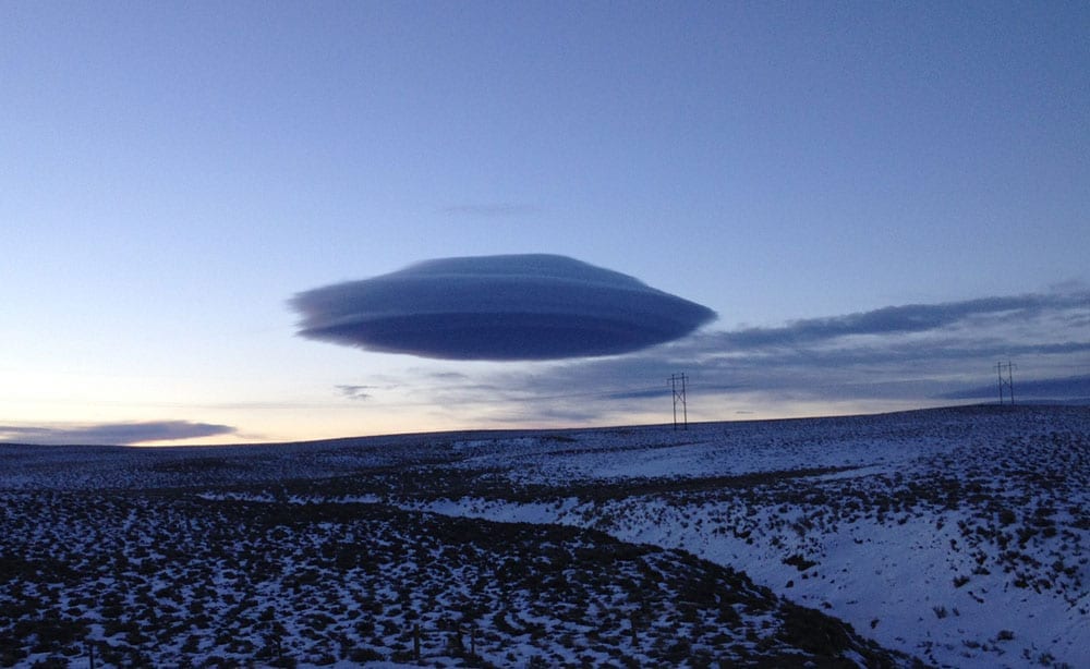 Altocumulus lenticularis reflected in the water, spotted during the early morning over the Mission Mountain Range, near Ronan, Montana, US