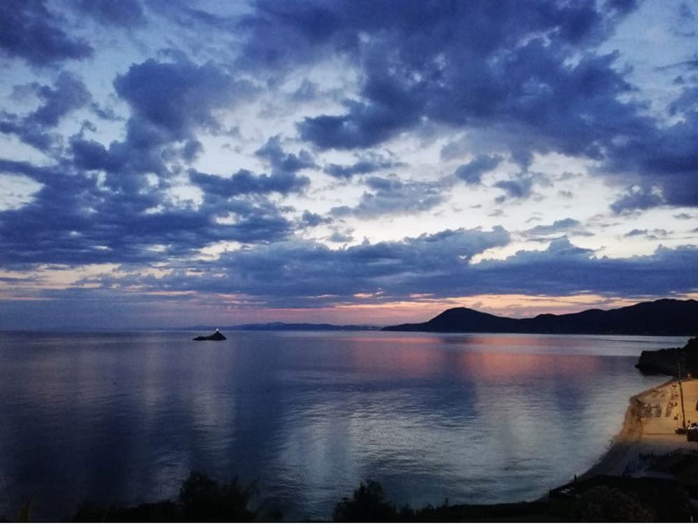 Sunrise over the Pacific Ocean with clouds that took on the resemblance of a skatepark in the foreground, spotted near Platanillo, Costa Rica