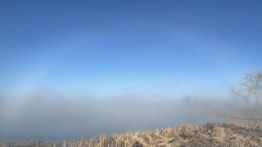 A fogbow forming over Longmont, Colorado, US.