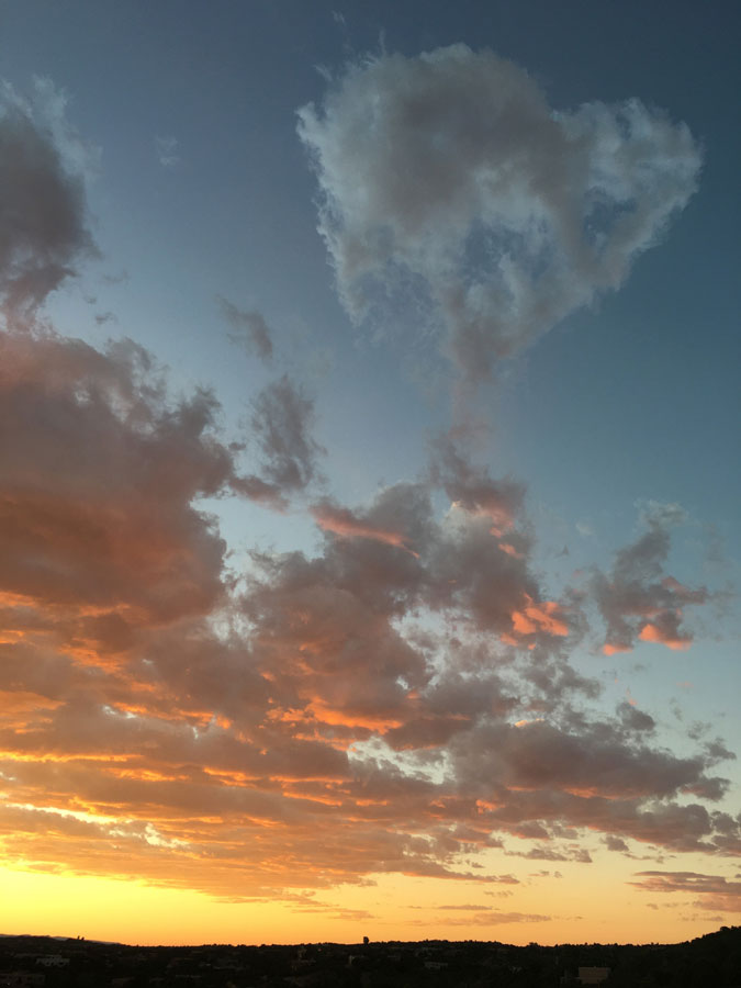 When Mario went outside in the morning with his dogs, he saw Mona Lisa's smile within the clouds, spotted over Santa Fe, New Mexico, US