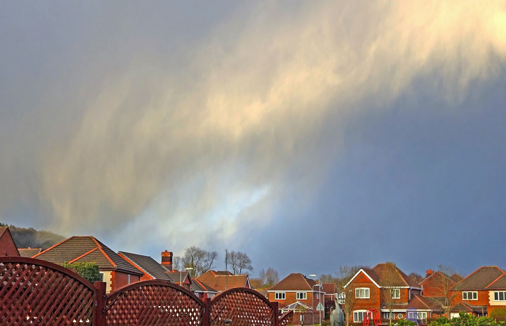 A precipitating storm system over Neath, South Wales.