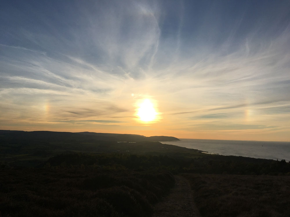 A pair of sundogs at sunset over the Bristol Channel, UK.