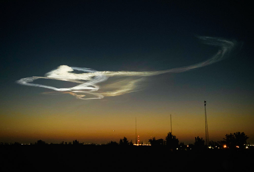 A contrail from the SpaceX Crew-2 rocket launch at Cape Canaveral, Florida, US.
