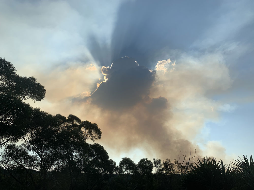 Clouds forming during a controlled burn off in bush land, on the northern outskirts of Sydney, Australia.
