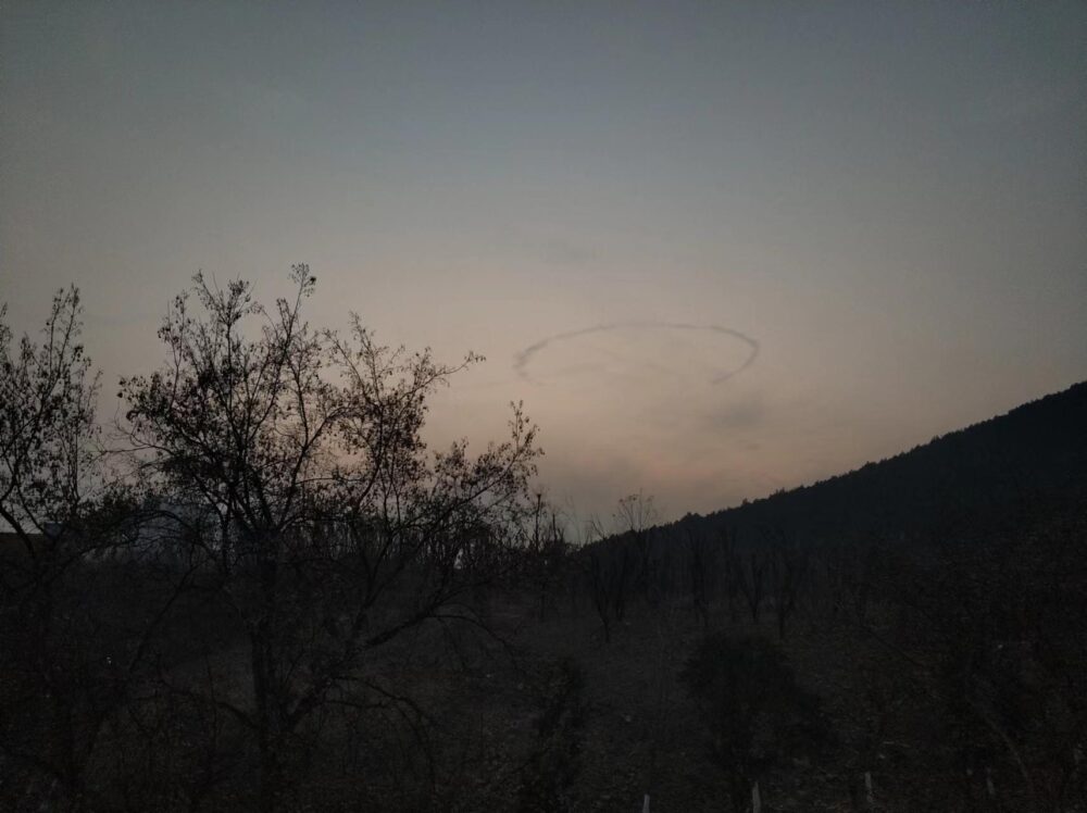 Signs of a distrail from a circling airplane spotted over Jiangsu, China