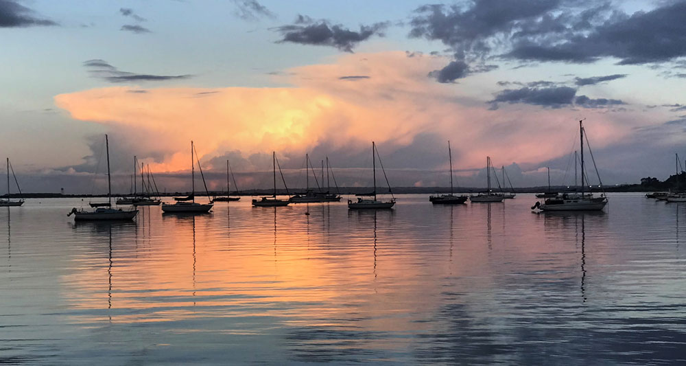 Sunrise over the Pacific Ocean with clouds that took on the resemblance of a skatepark in the foreground, spotted near Platanillo, Costa Rica