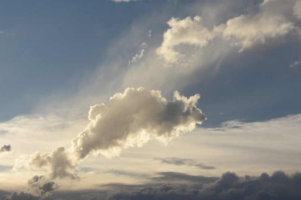 Cumulus fractus drifting above a lower layer of clouds, spotted over Torrejón de Ardoz, Spain