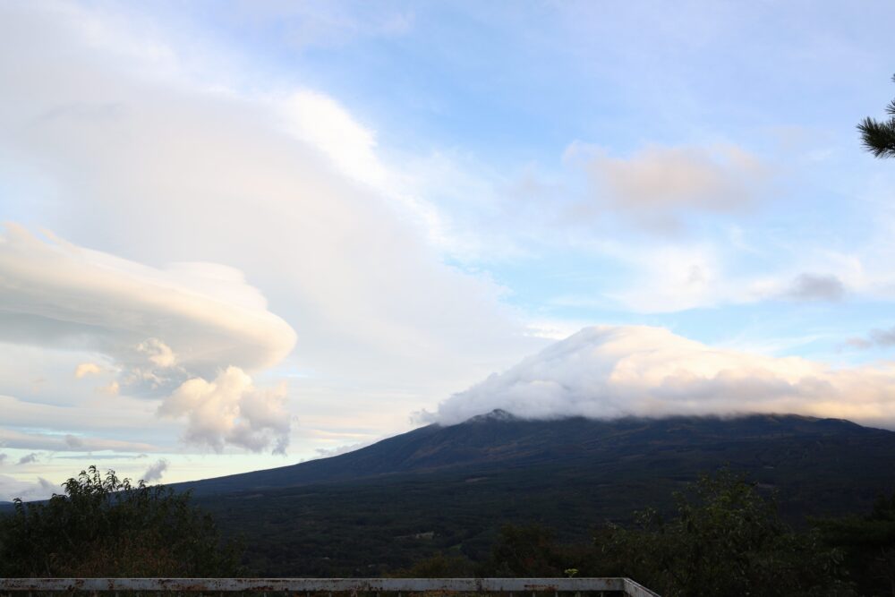 Altocumulus lenticularis spotted in the vicinity of Mount Fuji, which is shrouded by stratus, near Narusawa, Japan